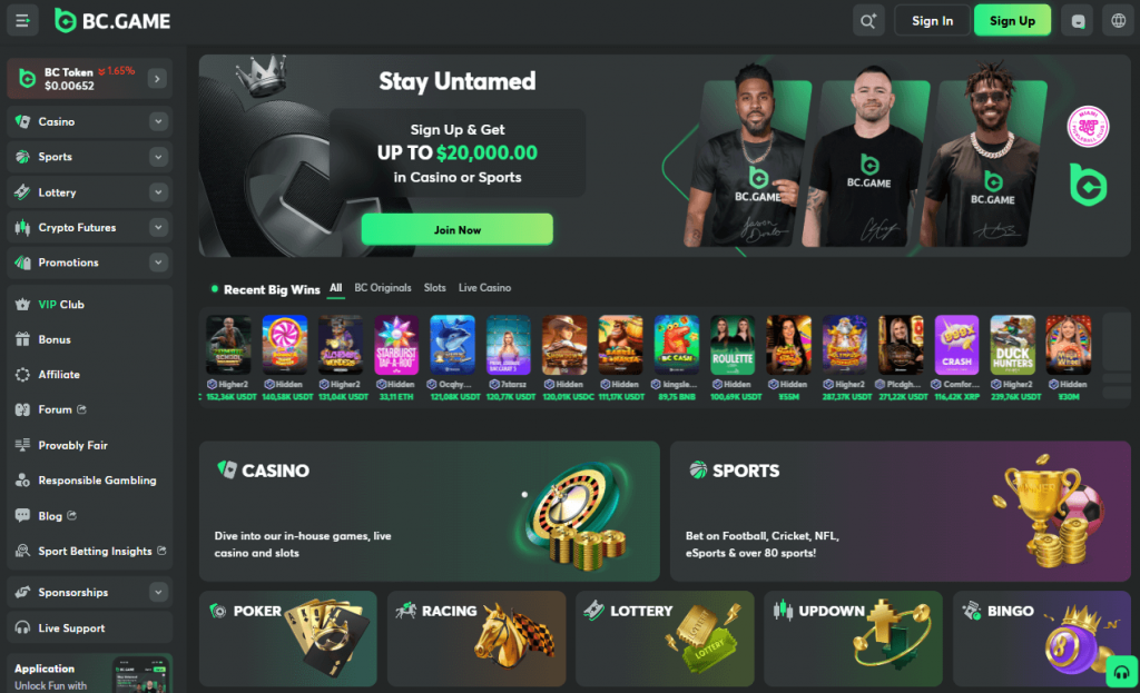 BC.Game patří mezi největší a nejdéle fungující krypto casina bez ověření identity, které si získalo popularitu díky svému otevřenému přístupu, rychlým transakcím a vysoké míře anonymity. Platforma byla spuštěna v roce 2017 a od té doby se rozrostla do celosvětové komunity hráčů, kteří preferují kryptoměny před tradičními platebními metodami. BC.Game je ideální volbou pro ty, kteří hledají moderní, transparentní a technologicky vyspělé prostředí pro hraní bez nutnosti zasílat osobní dokumenty.
