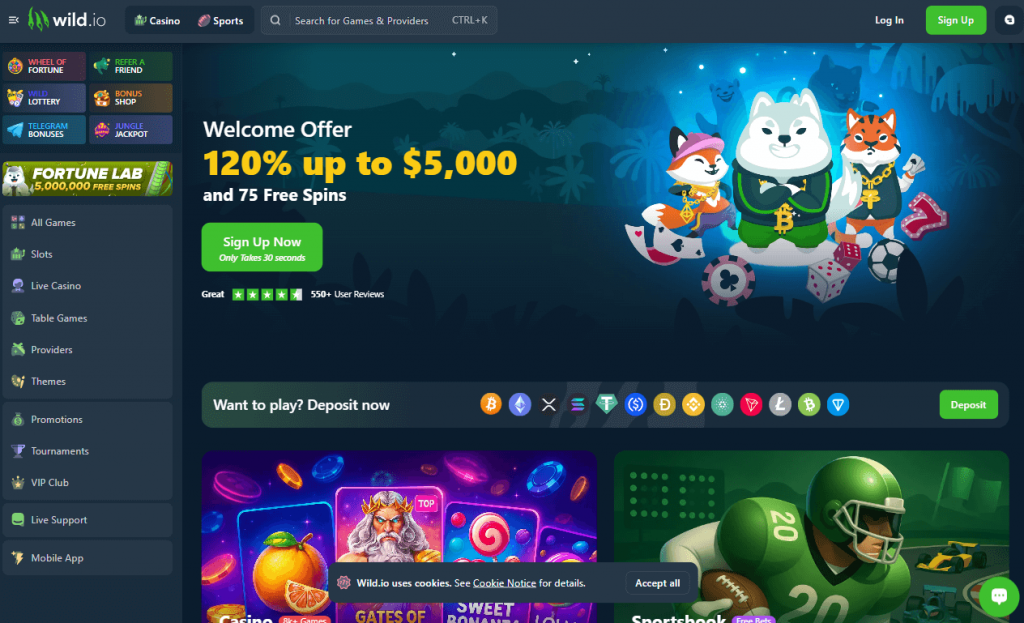Kasino podporuje více než pár kryptoměn (BTC, ETH, další běžné) a nabízí tisíce her od známých poskytovatelů. Výplaty kryptoměn bývají rychlé, často do 10-60 minut, pokud není nutné provést ověření.